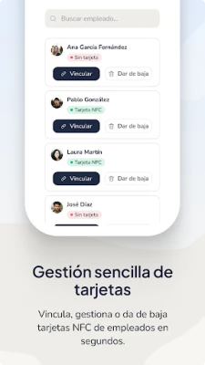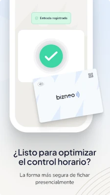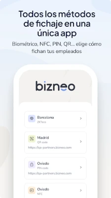 A Bizneo HR Fichaje con Kiosco ereje abban rejlik, hogy bármely táblagépet vagy okostelefont funkcionális terminállá alakít át. Nincs szükség speciális eszközök beszerzésére; meglévő készülékei máris készen állnak a feladatra. A belépések és kilépések rögzítése rugalmasan történhet NFC kártyákkal, PIN kódokkal, QR kódokkal, sőt akár összekapcsolt biometrikus rendszerekkel is. Ez a sokoldalúság ideális választássá teszi olyan környezetekben, ahol a rugalmasság és a központosított felügyelet kulcsfontosságú, emellett külső beléptető- vagy biztonsági rendszerekkel is zökkenőmentesen együttműködik, fokozva a biztonságot és az integrációt.