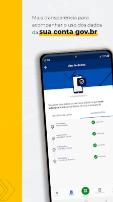 Ne aggódjon többé az elfelejtett jelszavak miatt! Ahol az „Belépés gov.br-el" gombot látja, ott elegendő mobiltelefonja biometrikus azonosítóját – legyen az ujjlenyomat vagy arcfelismerés – használni. Gyors, biztonságos és gondtalan hozzáférés várja a számos kormányzati platformon. Emellett az alkalmazás révén könnyedén megtekintheti digitális dokumentumait és adatait. Sőt, a megosztás funkcióval azonnal továbbíthatja őket kapcsolatai számára, egyszerűsítve ezzel mindennapjait.