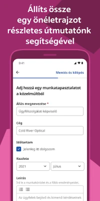 Az Indeed nem csupán egy keresőfelület; egy teljes értékű karrierpartner. Készítse el vagy töltse fel önéletrajzát, és mutassa be magát a legjobb formában a leendő munkáltatóknak. Az egyszerűsített jelentkezési folyamatnak köszönhetően időt takaríthat meg, hiszen mentett adatai azonnal rendelkezésre állnak. A beépített nyomon követővel pedig mindig képben lehet jelentkezéseinek állapotával, az Indeed értesíti Önt, amint egy cég áttekintette vagy válaszolt az Ön által beküldött pályázatra.