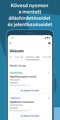 A tökéletes állás megtalálása sosem volt még ilyen egyszerű. Az Indeed applikációjával egy átfogó, percről percre frissülő adatbázishoz fér hozzá, ahol másodpercenként új lehetőségek nyílnak meg Ön előtt. Az intelligens keresési szűrők és személyre szabott ajánlások garantálják, hogy célzottan találja meg az Ön számára ideális pozíciót, legyen szó akár első munkahelyről, akár karrierje következő nagy ugrásáról. Az Indeed gondoskodik róla, hogy Ön mindig a legrelevánsabb állásajánlatokkal találkozzon.